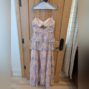 Mac Duggal pink and blue floral chiffon dress. Worn once and dry cleaned immediately afterwards. In like new condition.