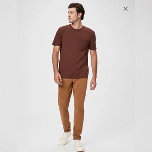 Made from supremely soft 100% cotton with slight stretch and a vintage tee feel, this crew neck tee features a raw edge chest pocket, a slightly curved hem and a center back seam detail. The Ramirez Tee in Vintage Burnt Hazelnut has been pigment washed for a unique look with highs and lows. Wear it on its own or layered under your favorite jacket for an easy weekend outfit.