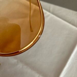 Sassy, cat-eyes look great on all face shapes! Small chip on bottom lens - see photos. Amber-toned, gradient lenses, gold frames.