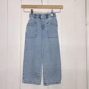 ZARA EUC Elastic Waist Wide Leg Blue Jeans