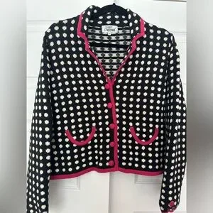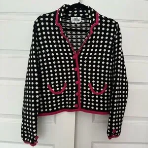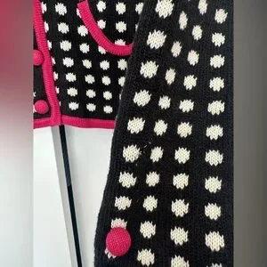 vintage y2k 2000s girly navy blue and cream polka dot cardigan sweater size M