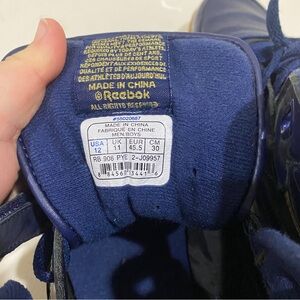 Stylish navy blue high-top sneakers by Reebok. Features a classic design with a secure strap. Perfect for casual wear. Lace ups - high tops - sz 12