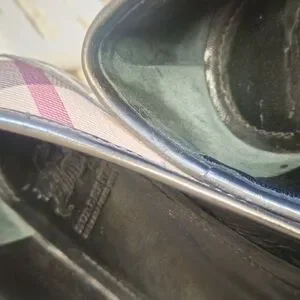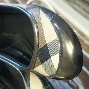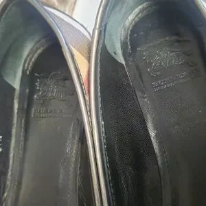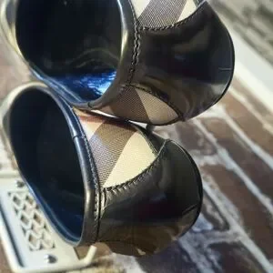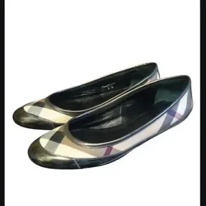 Stylish Burberry ballet flats. Classic checkered pattern. Perfect for casual wear.