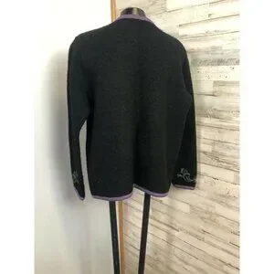 Eagles Eye Vintage Womens Black & Purple 100% Wool Embroidered Cardigan S