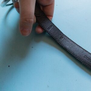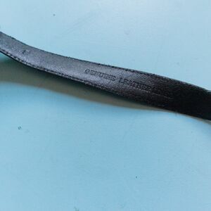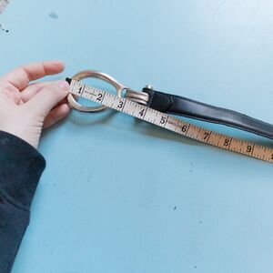 Features: Black genuine leather belt base with silver embossed hook style decorative belt.
