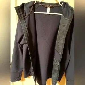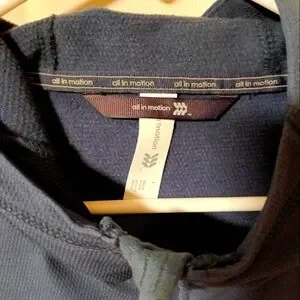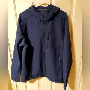 All In Motion Woven Fleece Jacket BLUE Stretch Water Repellant Thumb Holes Sz L