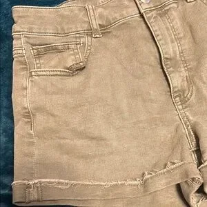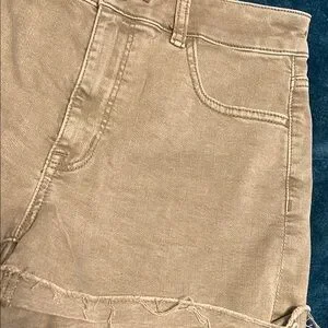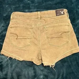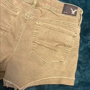 American Eagle Outfitters Hi-Rise Shortie. Stylish GREEN denim shorts. Features a classic button closure. Perfect for casual outings. EUC. See photos for measurements.