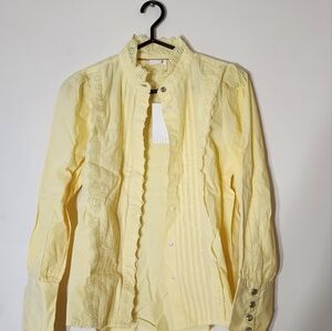 NÜMPH 100% Cotton Yellow Shirt Long sleeves Mandarin collar