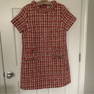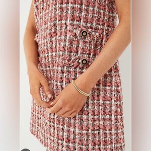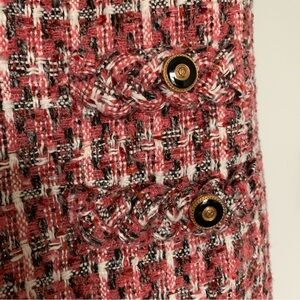 Textured tweed fabric finished with luxe braided trim and vintage-look buttons.