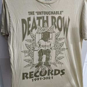 Vintage-style Death Row Records graphic tee. Features bold print and iconic design. Perfect for music fans.
