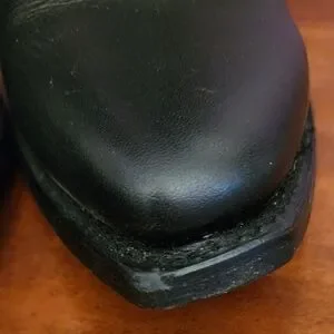 Please see pictures for the left toe sole...it appears there's a chip in the sole. These came to me like this and is not noticeable when wearing.
