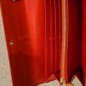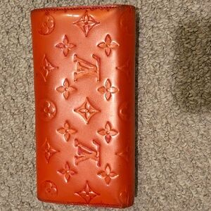 Authentic Louis vuitton vernis glossy leather monogram sarah wallet-red.