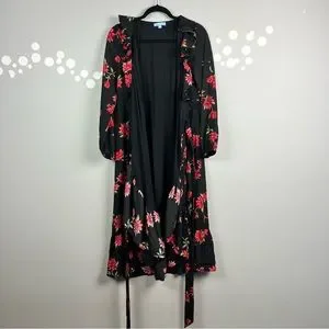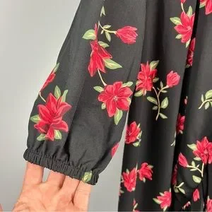 Black with red and green floral print
