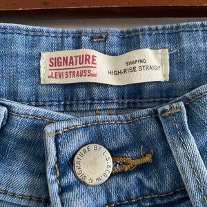 Levi Strauss Signature Shaping High Rise Straight Jeans in size 27. Light wash. Stretchy. 65% cotton, 33% polyester, 2% elastane. Great pre-owned condition.