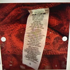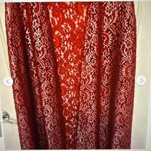 This is a LuLaRoe Elegant Joy Vest in size Large. It is sleeveless with an open front. It is midi length with side slits. This vest is sheer red with a red and silver swirl design. This vest is brand new with tags attached and has never been worn. Comes from a smoke and pet free home.