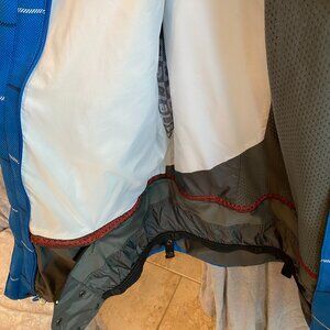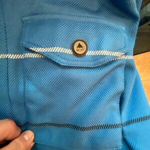 Very nice Burton Dryride "DHAKA" Full Zip thermolite Insulated Ski/Snowboard Jacket. Zip/hook and loop closure, Hood, underarm venting, Zip pockets. Lake Blue. Men's XL.