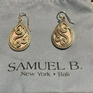 These earrings are by Samuel B. Please note the 1st Pic of these earrings shows the side that you see when they are worn. Sterling Silver with Mother Pearl in the background. The pink side is not revealed when you wear them and color is slightly off see pic 5. The previous seller did not disclosed this probably because this side does not show much when wearing these earrings. They are very pretty, but I am reposhing them. Please see the actual dimensions and pics as listed for details .
