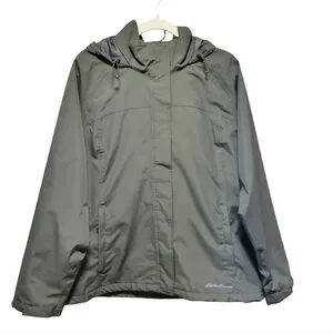 Excellent used condition - basically new! I only wore this a handful of times. Lots of features on this Eddie Bauer Rain Jacket!
