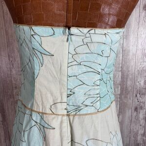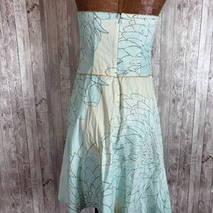 Size petite 6 Elevenses dress from Anthropologie. Light green with large floral print and back zip. Cotton/lycra blend.