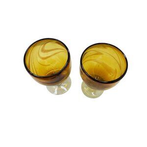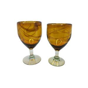 Vintage Hand Blown Amber Swirl Wine Glasses Set Of 2