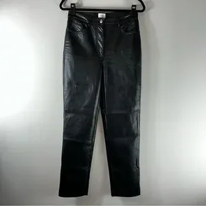 Aritzia Wilfred Faux Leather High Rise Straight Leg Black Women’s Pants Size 6