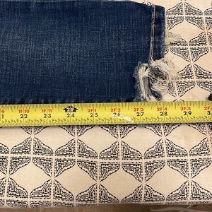 Trendy distressed jeans. Classic blue color. Frayed hem for a stylish look.STELLA-slim fit, low rise. Non-smoking home.