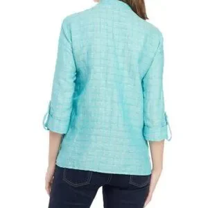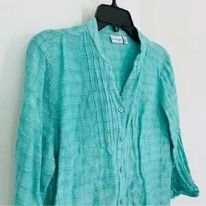 Kim Rogers Linen/Cotton 3/4 Sleeve Button Down Shirt Turquoise