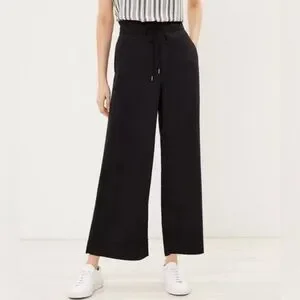 NWT Loft Black Cropped Wide Leg Lightweight Pull On Pants Size M #1519