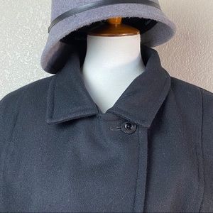 Fully lined. Double breasted with extra button up top at collar. Fabric content label is missing, confident that it’s 100% wool. Amazing vintage condition. Size is approximate, see measurements. Measures approx (flat) chest 27.5 in, length 32 in.