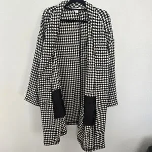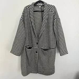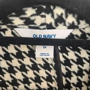Old Navy Women's 3X Black & White Houndstooth Overcoat Button Up Long Cardigan