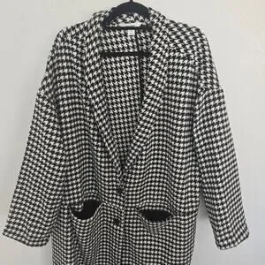 Old Navy Black & White Houndstooth Overcoat Button Up Long Cardigan