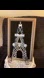 I hand made the Eiffel Tower using vintage and repurposed jewelry into a displayed art piece. Measuring 16” x 10” the outside edge of the tower is made with broken blue glass/stone statement necklace. The archway and lower tower crafted from a necklace of silver tone beads. The cross supports from upcycled broken rhinestone necklace adding a shimmering appearance of this cherished landmark. A statement necklace also used as the crossbar support. The frame is a vintage frame that was to be thrown away!