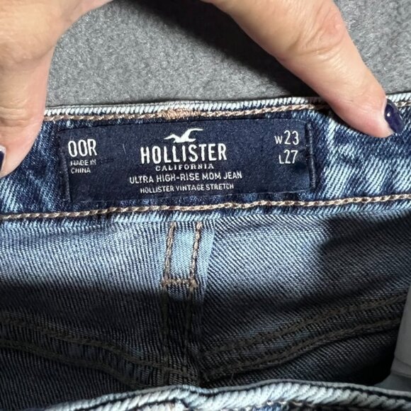 Hollister Ultra High Rise Ripped Patch Mom Jean Raw Hem Vintage Stretch 23x27 00