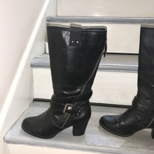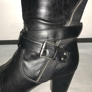 Rialto Caparella Black Heeled Boots Women's Size 8 1/2 M Buckles Zipper