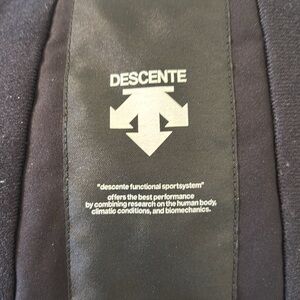 Practically new used Descente ski jacket- only worn a few times. Zippered side pockets plus one on the chest. Velcro wrist closures to keep the snow out. Removable hood with high-zip collar. Teal, black and dark gray, size 12 (junior/youth).