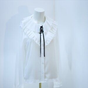Shirt with a lapel collar with pleated ruffles and contrast tie. New with tag. White color