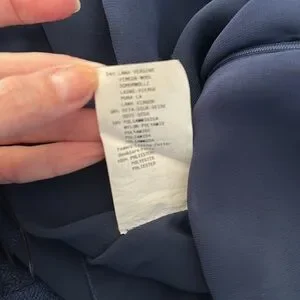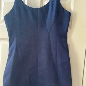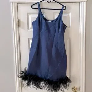 Pre loved beautiful, navy dress with black feather trim. Front seaming, side zip, silk crepe slip liner. See all pictures they are part of the description Questions? Leave a comment below!