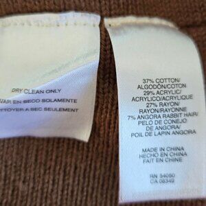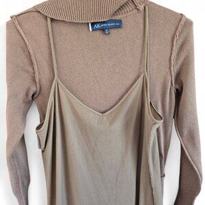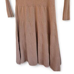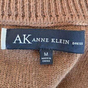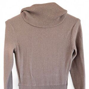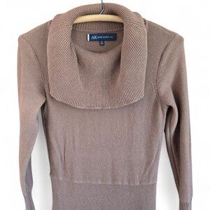 Anne Klein Brown Long Sleeve Sweater Dress Medium Cowl Neck Cotton & Angora