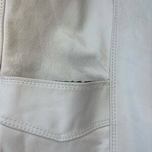 Stylish ivory leather vest. Features snap buttons. Perfect for layering. Gorgeous vest