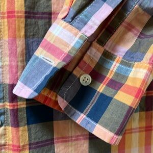 Gap women’s boyfriend fit multicolor plaid button down shirt, size XS good condition, all buttons intact casual, colorful, lightweight, fall, spring