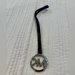 Navy blue leather band with silver MK logo tag and pull through loop.