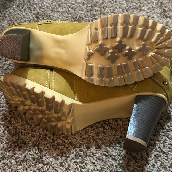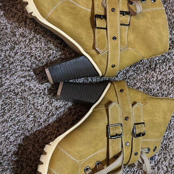 Work boot style boots with heels. Tan w black heels. Worn 2x
