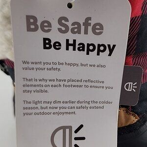 New with tags, Hot Paws youth waterproof snow boots with a red plaid upper, insulated up to -30C and a cozy fleece lining and with reflective details, size 6.