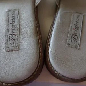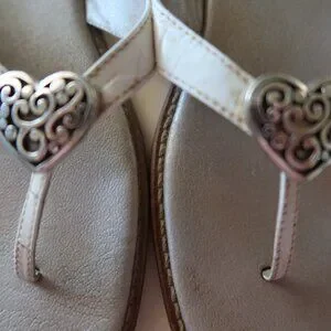 Brighton Women's Size 10 Medium Sandals . White Leather with silver plated heart on top. 1/2" heels, V style thong sandal. These are pre owned.