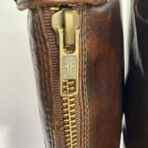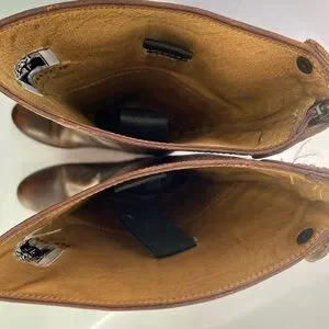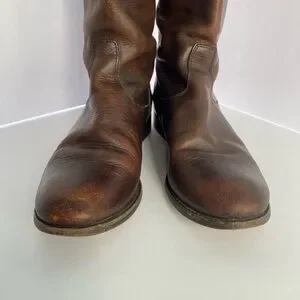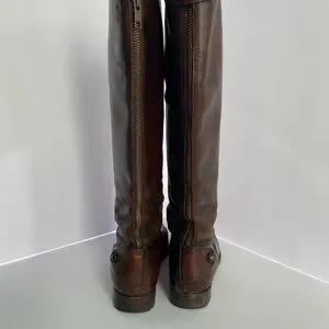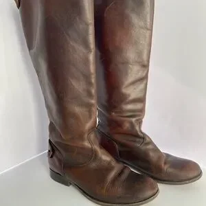 Elegant brown leather riding boots. Classic design with buckle detail.