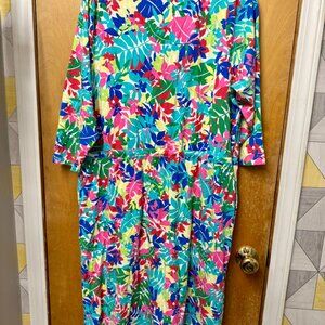 Land's End 1x Casual Midi Dress in Tropical Print