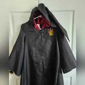 Harry Potter Robe Kids Medium Gryffindor Black Red Costume Hermione Cloak Hood