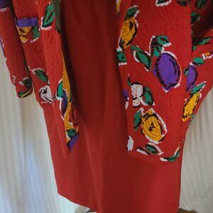 Vintage Oscar de la Renta Floral jacket and red skirt, size 6.