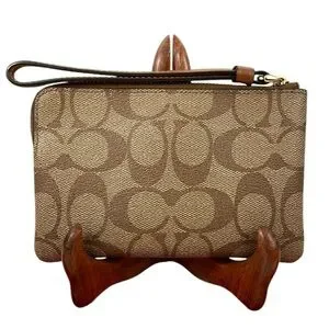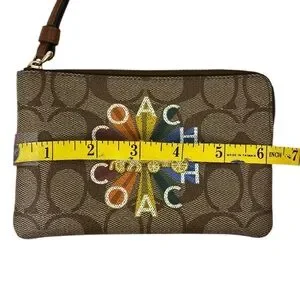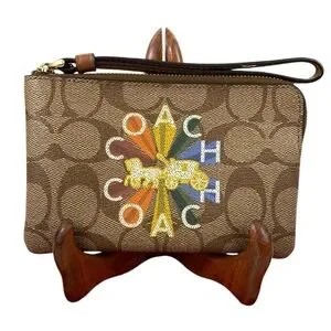 Coach EUC Rainbow Radial Print Khaki and Tan Pride Small Corner Zip Wristlet