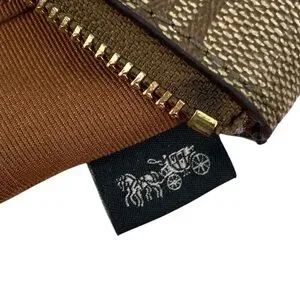 Features: Khaki and Tan Rainbow Radial Print Signature C Horse and Buggy Pride Casual Classic Trendy On The Go Daytime Fun Colorful Cute Designer Gold Tone Hardware Inside has 2 Slip Pockets Small Corner Zip Wristlet